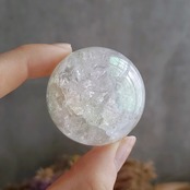 人工的に入れられたクラックにオーラ加工が輝く、かわいらしい水晶スフィアです♡