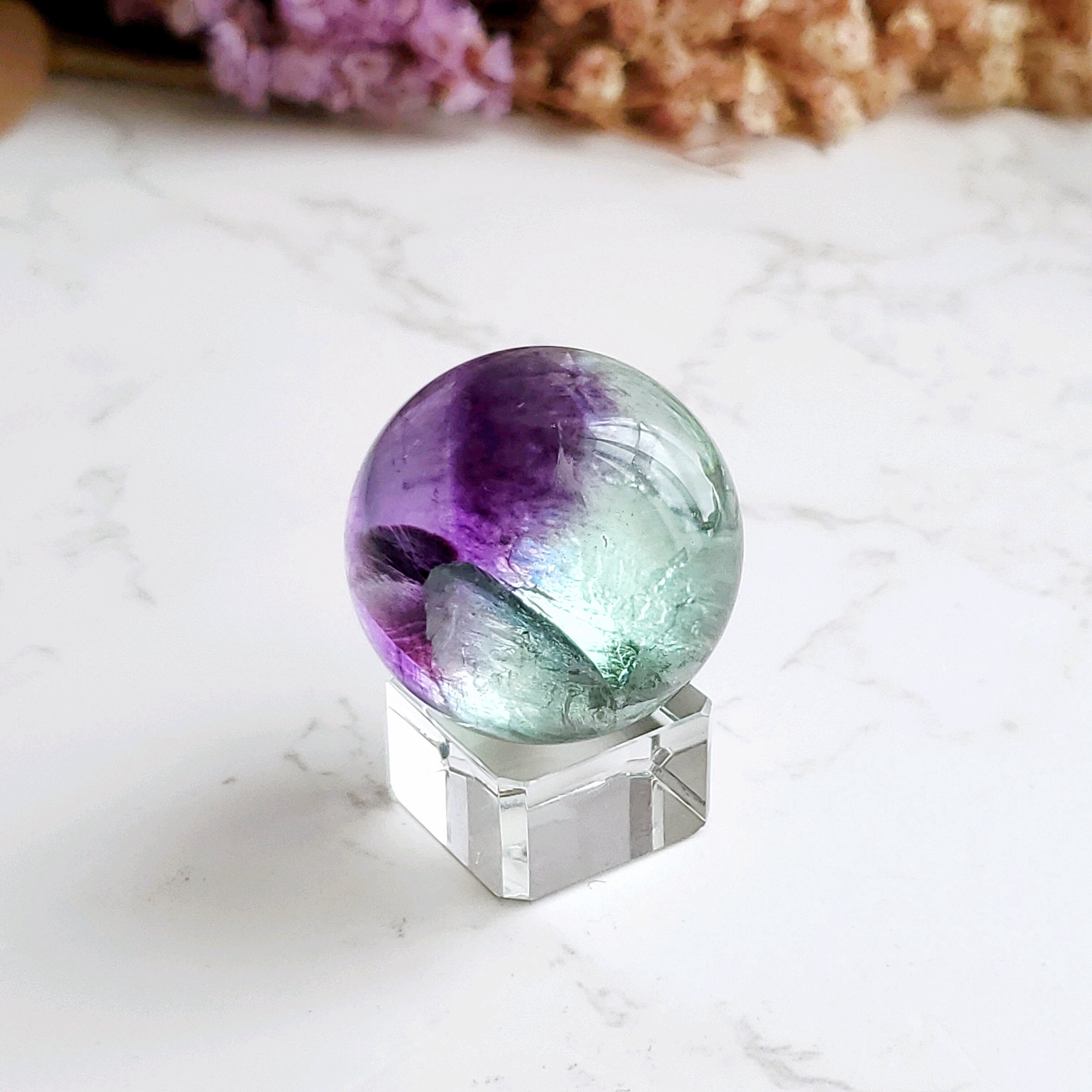 透明感抜群の高品質フローライトスフィアです。