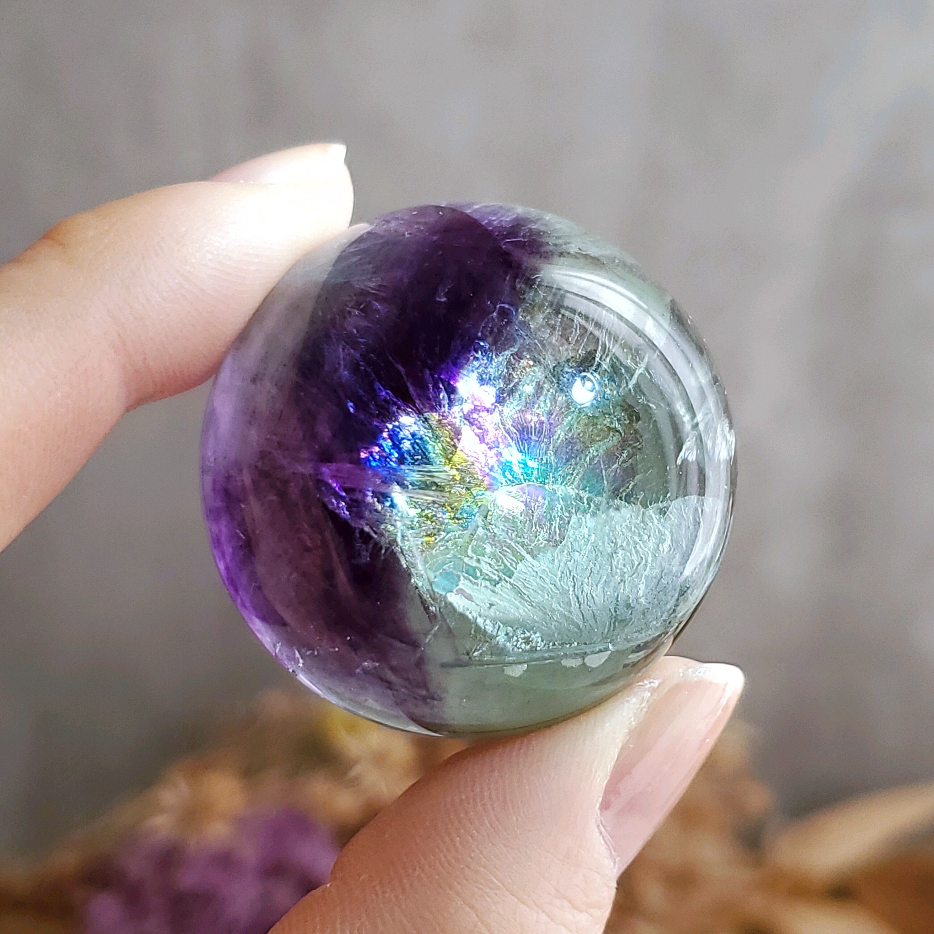 【虹ギラ】 フローライト スフィア B