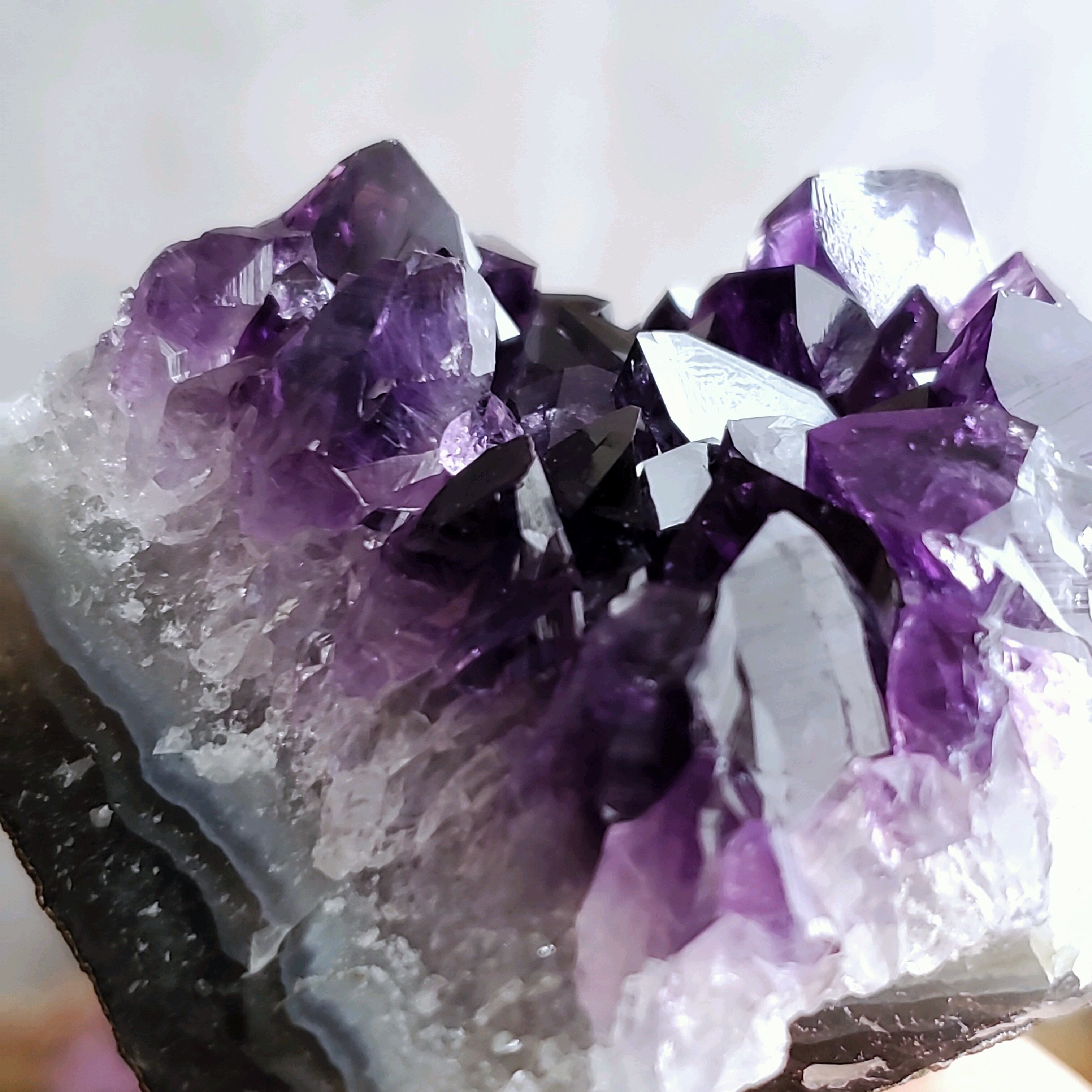 ウルグアイ産らしく結晶の色は濃い目で艶があり、光を受けてキラキラと輝きます。