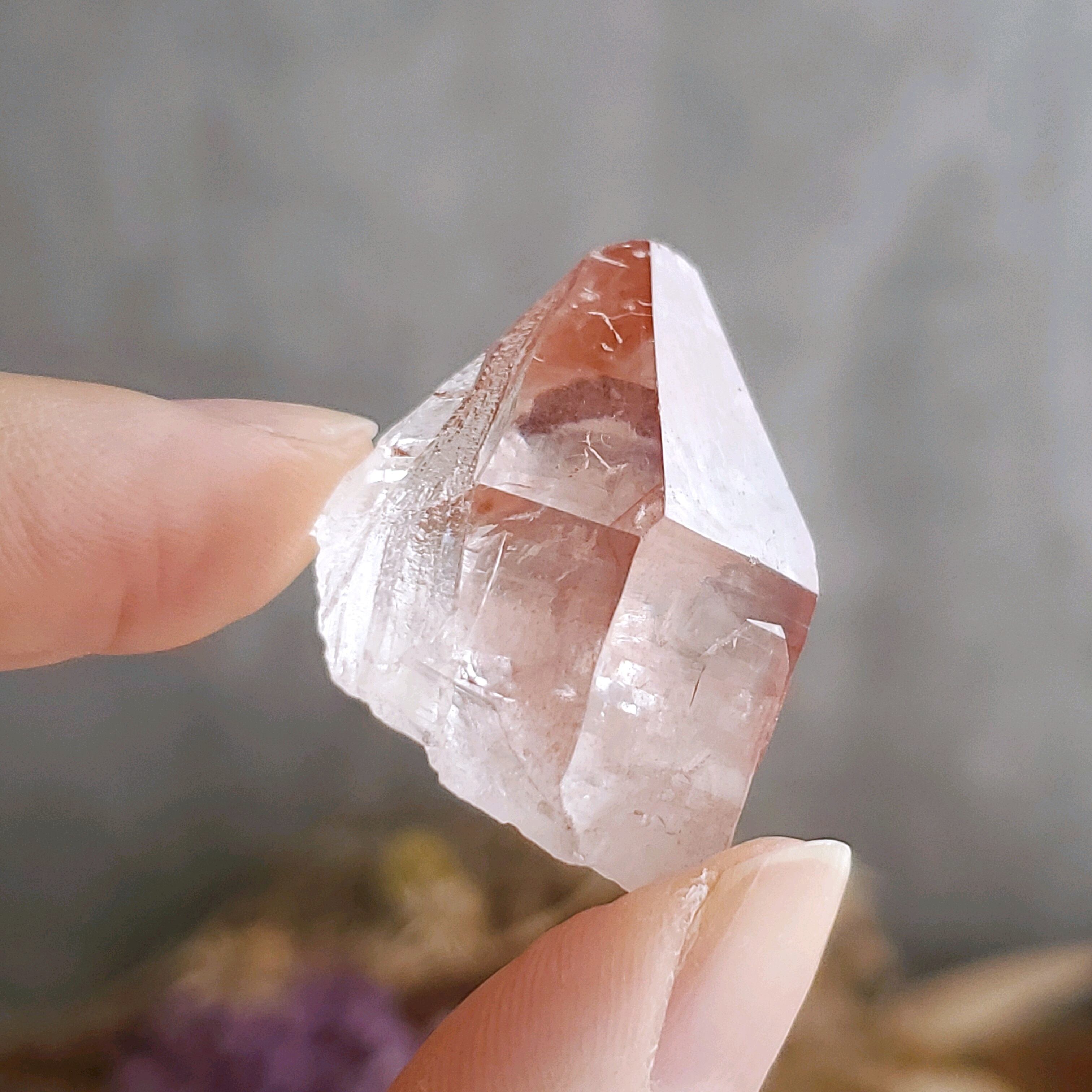 鉄分の付着によりピンク色をした希少なレムリアンシードクリスタルです。