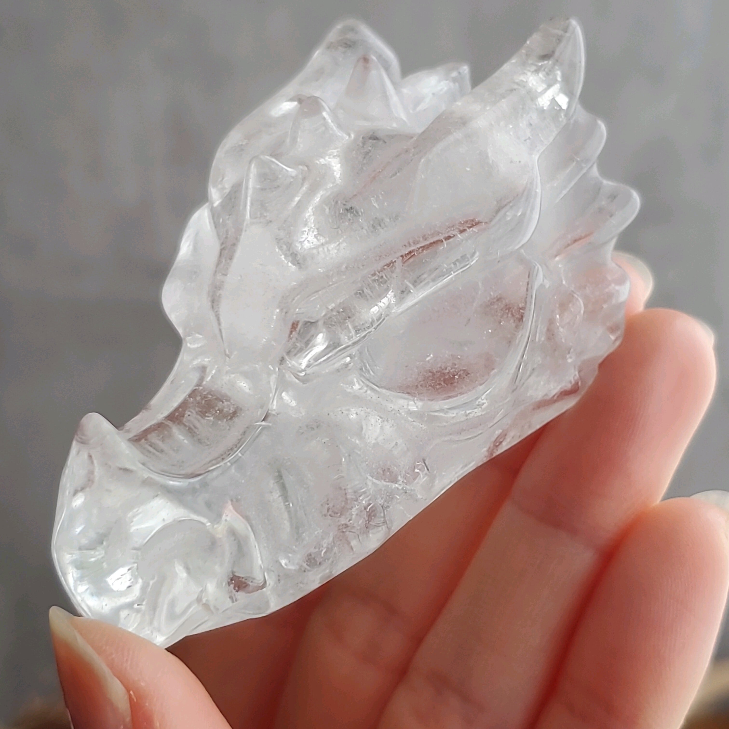 虹がキラキラと美しい水晶のドラゴンヘッド。