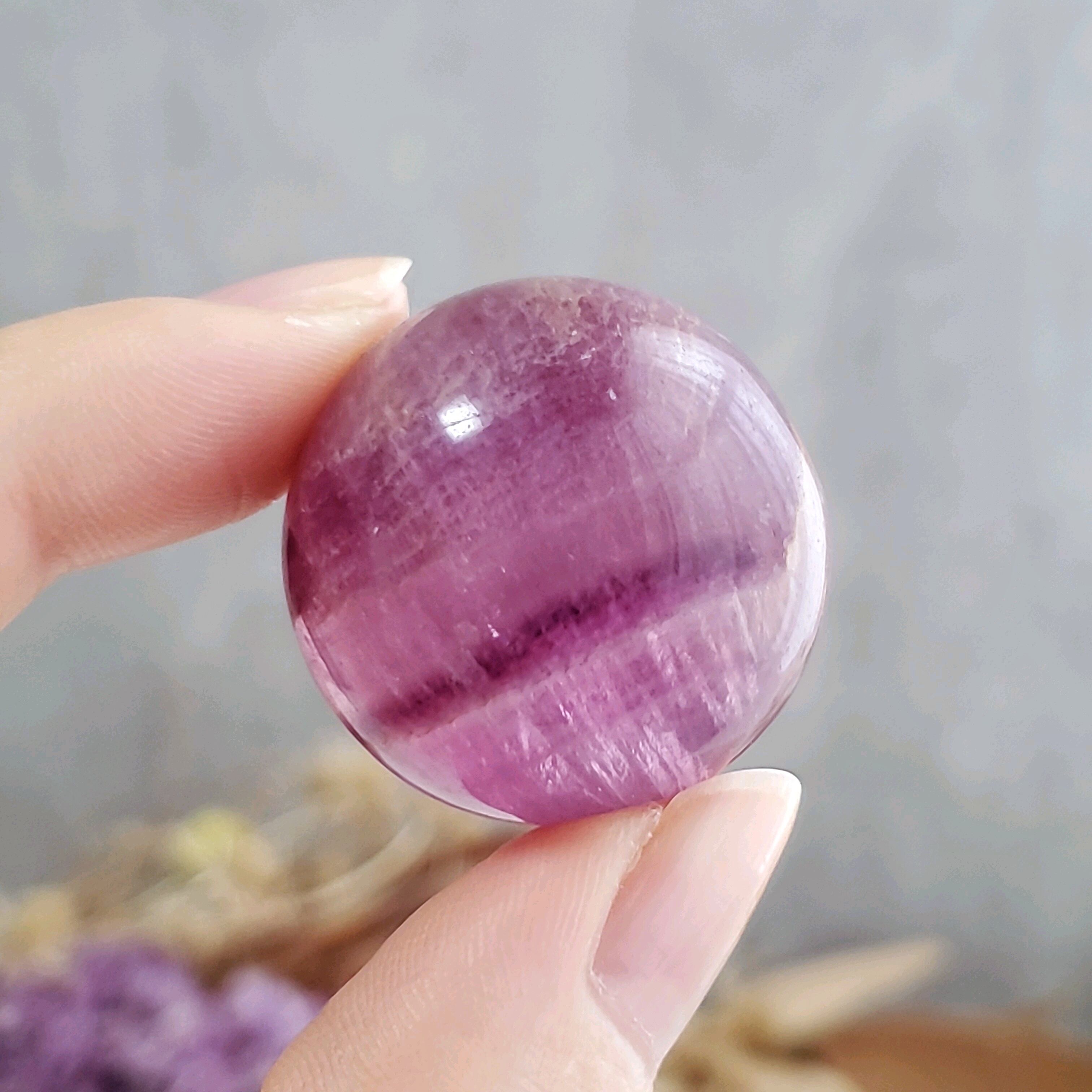 かわいらしいミニサイズ♡パープルのフローライトスフィアです。