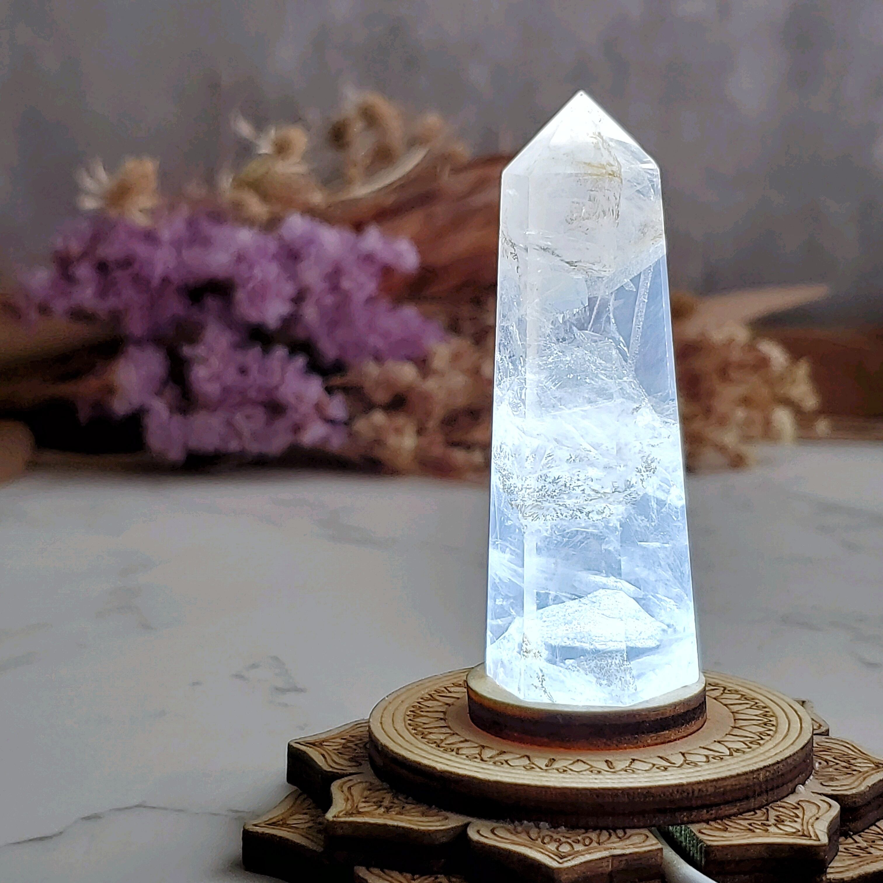 透明度の高いローズクォーツにシダ模様の入った高品質なタワーです。