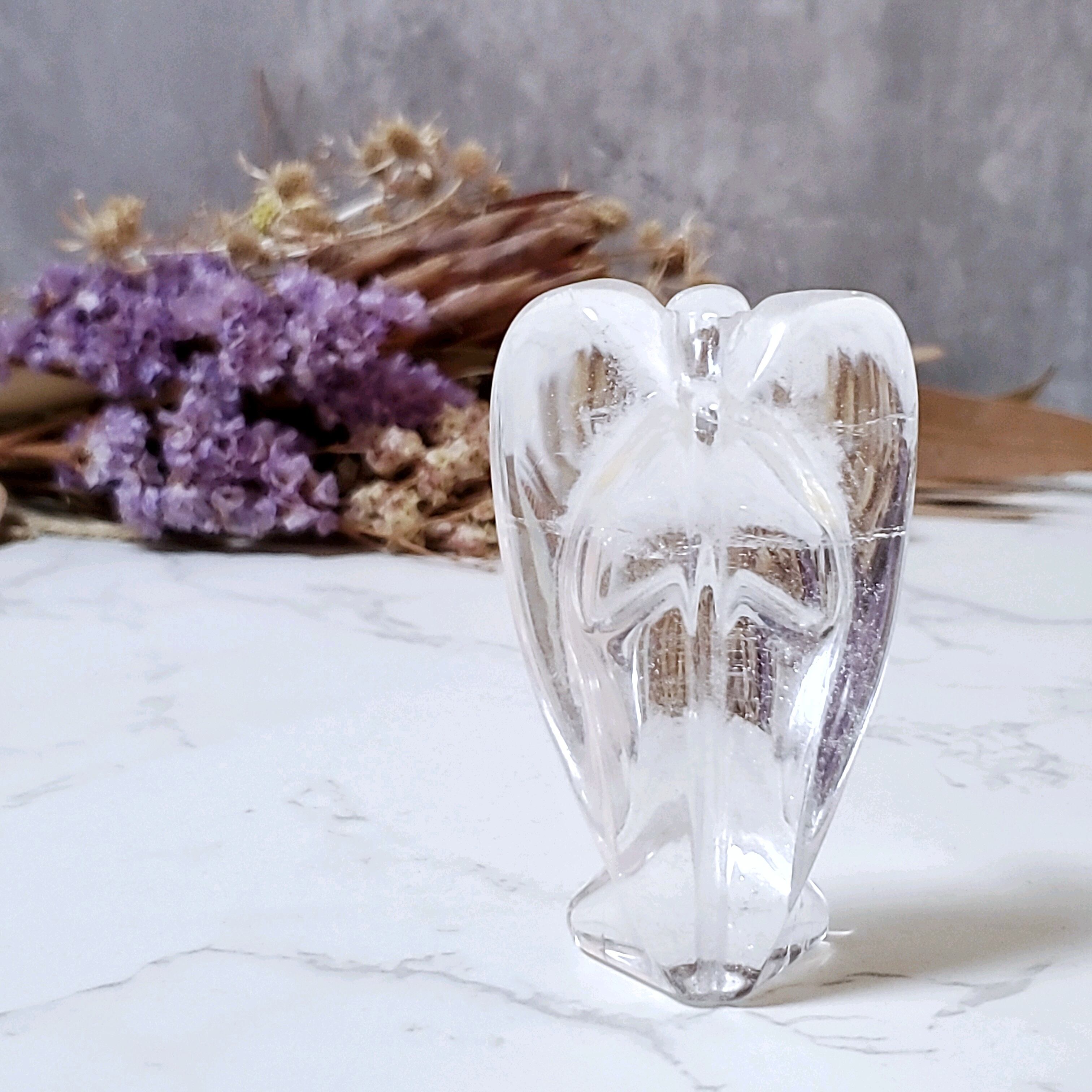透明感のある水晶で彫られた天使さんです。