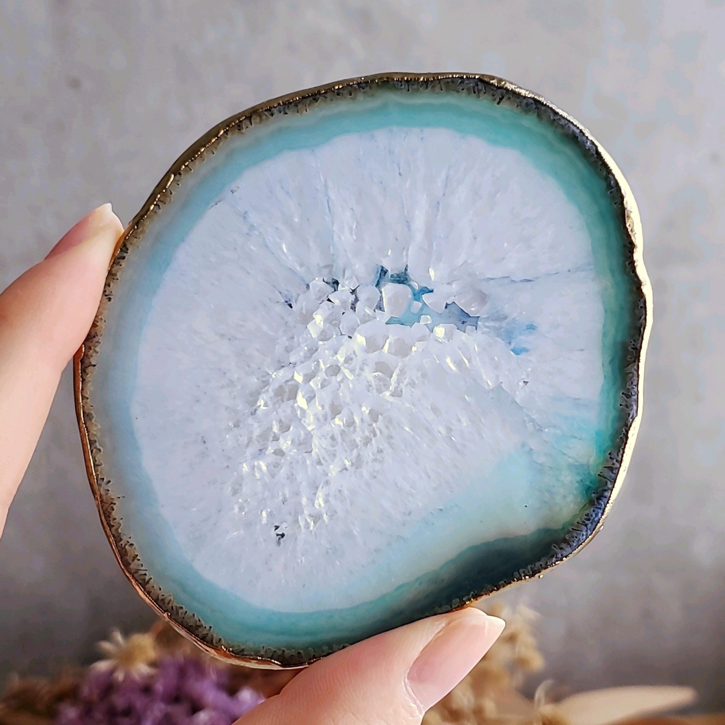 うっすらとブルーに染色されたアゲートのスライスプレートです。