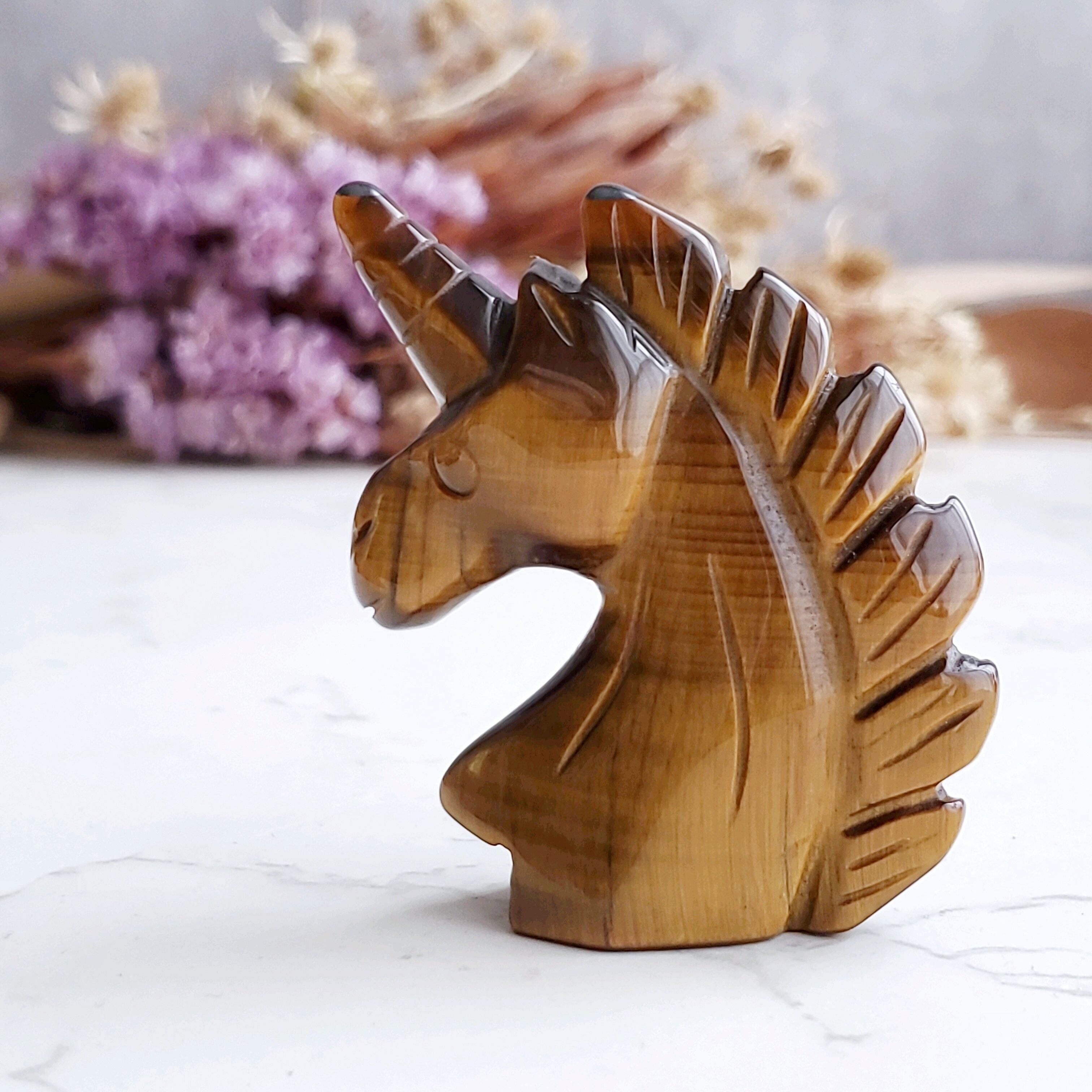 両面ともに美しいキャッツアイ効果が見られる素敵なタイガーアイのユニコーンです。