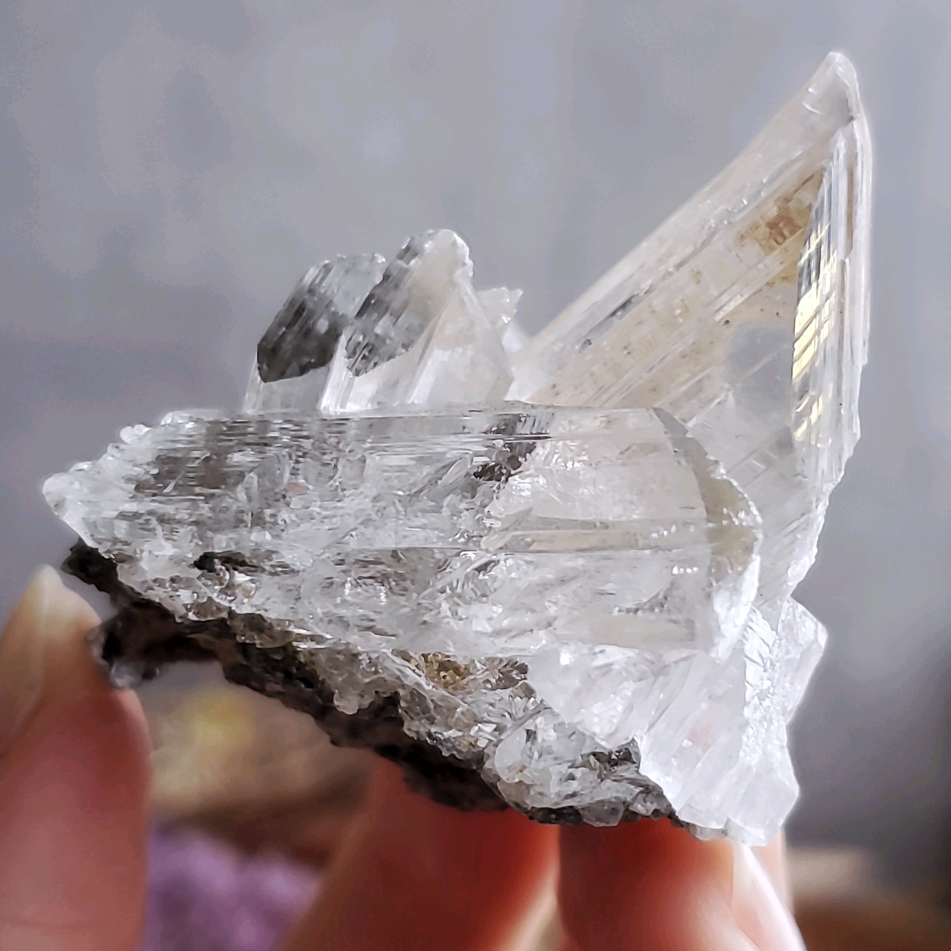 透明感が非常によく、光を放っているかのような輝きです。セレナイトは元々浄化力が高いといわれる石ですが、こちらは小さいながら見ているだけで心のモヤが晴れ、自然と背筋が伸びるような凛とした美しさがあります。