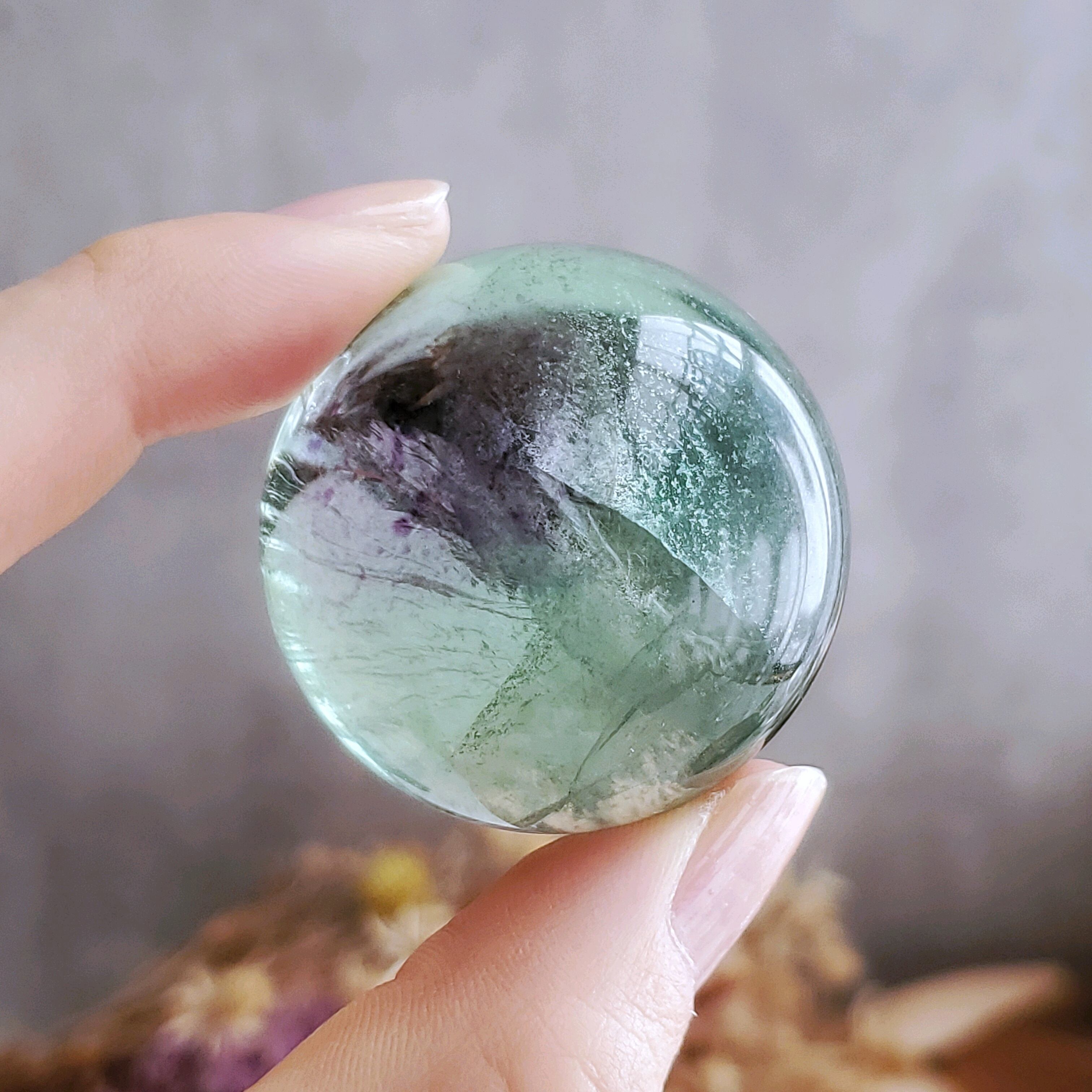 ※フローライトは光の加減によって、かなり見え方に差のある石です。撮影はなるべく日当たりの良い時に行うため、暗い室内だと画像や動画より暗いお色味に感じることもございますことをご了承いただきますようお願いいたします。